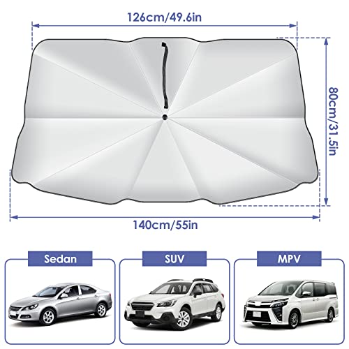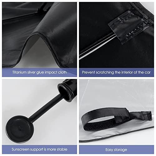 [Protezione solare efficace]: questo ombrello per parabrezza anteriore dell'auto è realizzato in tessuto composito di titanio argentato di alta qualità, con un buon effetto di isolamento termico, riducendo efficacemente la temperatura interna dell'auto e prevenendo i danni e l'invecchiamento dell'auto.