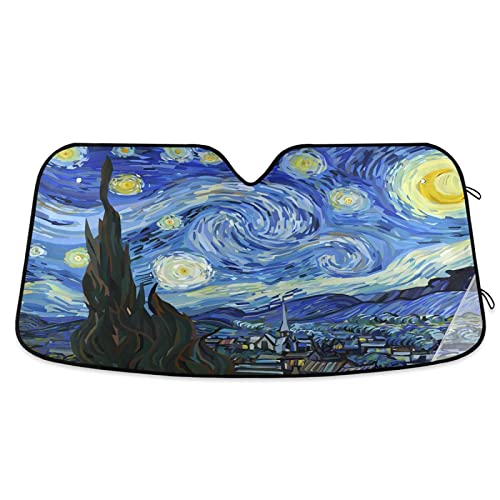 635 Parasole per Parabrezza per Auto Van Gogh Notte Stellata,Copertura Parabrezza Auto Isolamento Maggior Parte dei Veicoli Parasole per Parabrezza Mantiene L'Interno Fresco 130x70cm