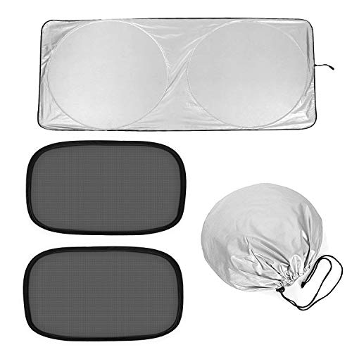 Parasole per parabrezza, PEYOU (3 Pezzi, Universale) 1Parasole Auto Parabrezza (160CM X83CM) +2 Tendine Parasole Auto Bambini, Protettore Contro i Raggi UV, Ripiegabile per Evitare i Raggi del Sole