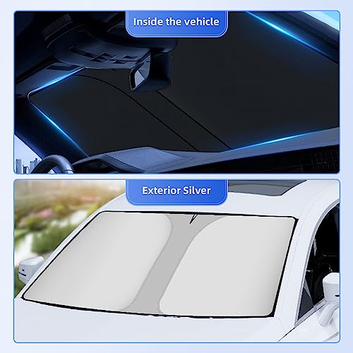 ❄ 【TRASPORTO E FACILE】: il nostro parasole per parabrezza anteriore può essere ripiegato e riposto nella borsa, la funzione pieghevole lo rende più comodo da usare e riporre. Si installa e si piega in pochi secondi senza ventose o adesivi. accessorio parasole per auto ideale per l'estate.