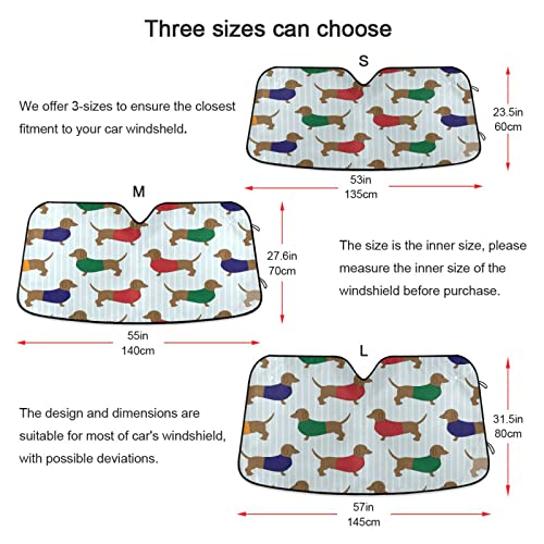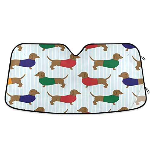 Parasole pieghevole con motivo bassotto per auto con motivo a cani e raggi UV per mantenere il tuo veicolo fresco (139,7 x 70,1 cm)