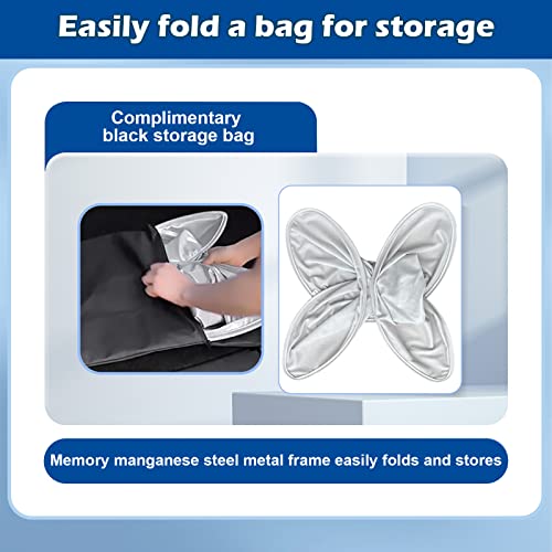 Materiali di alta qualità: il parasole per auto è realizzato in materiale poliestere traspirante e telaio in acciaio al manganese ad alta resistenza, che può ridurre efficacemente la trasmissione del calore del 70% e fornisce un ambiente di guida più fresco