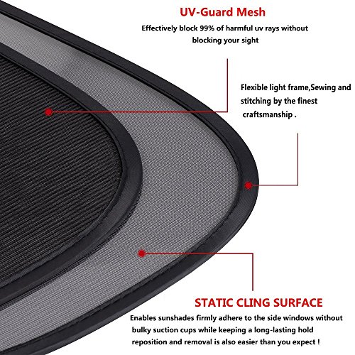 Visiere finestra sole laterali con 44 x 35 cm è adatto in quasi tutte le automobili per il finestrino laterale. Le parasole auto universale offrono un'ampia copertura per i finestrini laterali auto.
