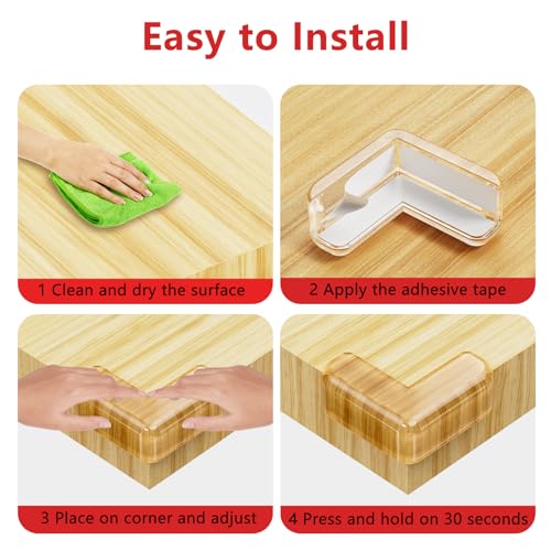 【Nastro adesivo pre-applicato】 I paraspigoli per bambini includono adesivi pre-applicati direttamente, è sufficiente rimuovere la copertura, quindi incollare gli angoli del tavolo e premere per un minuto. Pulire la superficie prima dell'installazione per assicurarsi che non ci siano polvere, acqua, olio e non cercare di spostare il paraspigoli entro 24 ore dall'installazione.