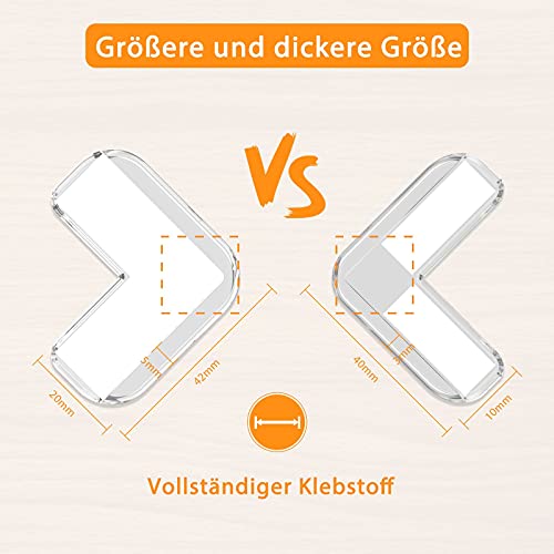 Grandi dimensioni e spesse. Per ottenere il miglior effetto, i nostri paraspigoli sono stati migliorati da dimensioni più grandi e più spesse. Sono grandi 4,2 cm x 4,2 cm e spessi 0,5 cm. Altezza e larghezza sono di 0,6 pollici, che è sufficiente per essere saldamente combinato con il nostro nastro adesivo più stente.