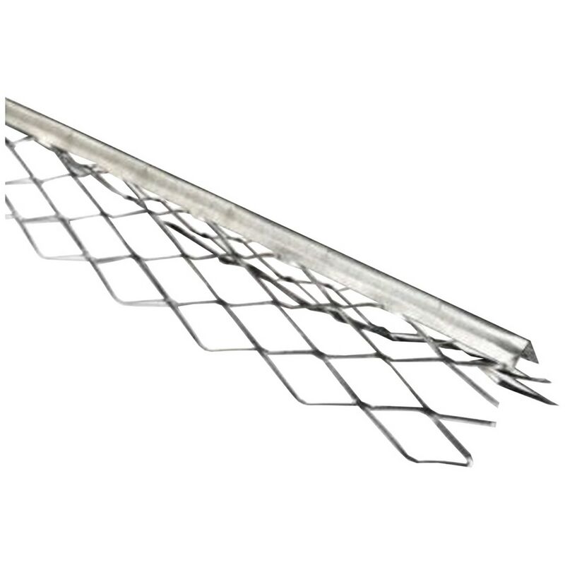 In lamiera zincata, a spigolo vivo, 5 maglie (4 rombi). spessore intonaco 10 mm. dimensione lato 35 mm.cm 170