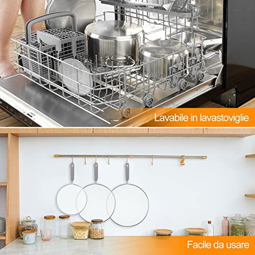 MULTIFUNZIONE - I paraspruzzi possono essere utilizzati anche come colino per pentole o scolapiatti per padella - Maniglia con un gancio che può risparmiare spazio nella tua cucina. Dopo l'uso, basta la maniglia e appenderlo nel ripostiglio della cucina.
