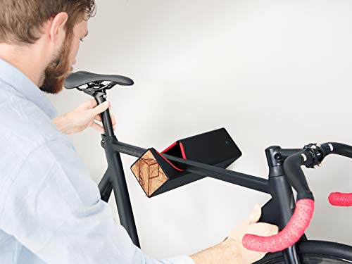 SUPPORTO DA PARETE PER BICICLETTE DI DESIGN - Adatto per manubri di larghezza fino a 66 cm / Colore: Nero / Protezione dei bordi: Rossa / Fronte in legno: Senza