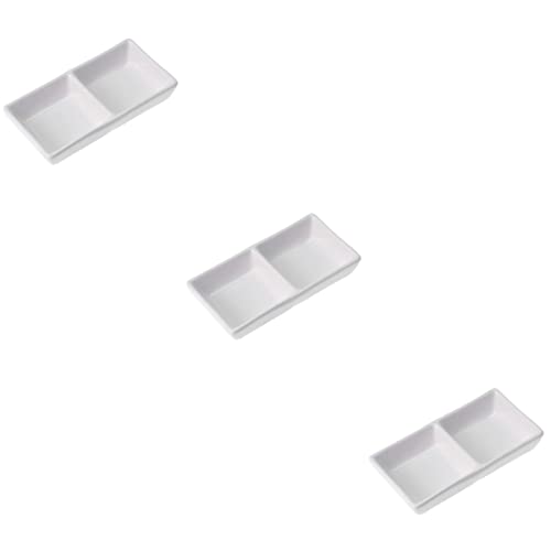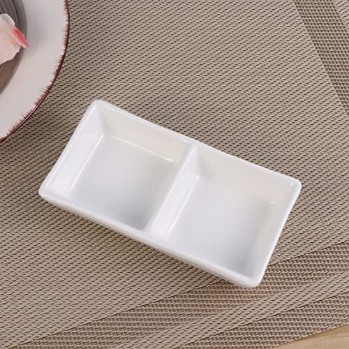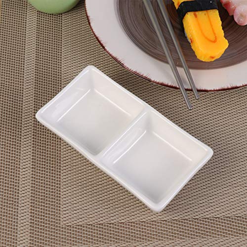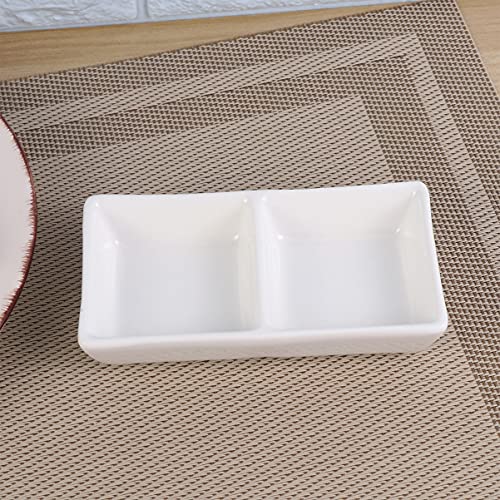 PAREKS 3 vassoi da portata in ceramica bianca pura da 12,7 cm, a 2 scomparti, per salsa e snack per spezie, salsa di soia