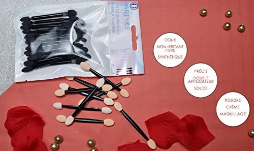 PARENCE - Set di 20 pennelli per ombretto, usa e getta, strumenti per il trucco, double face, spugna con punta, per applicazione di trucco, 20 pennelli, colore: nero/beige)