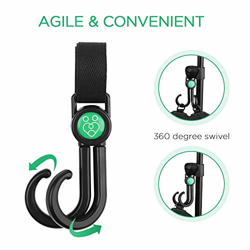 Adattabilità e praticità: la chiusura in velcro rende super veloce e facile l'applicazione di ganci per passeggini a qualsiasi passeggino sia in orizzontale che in verticale. Ogni gancio ruota di 360 gradi, per permettere di usarli in modi diversi. Confezione da 2.