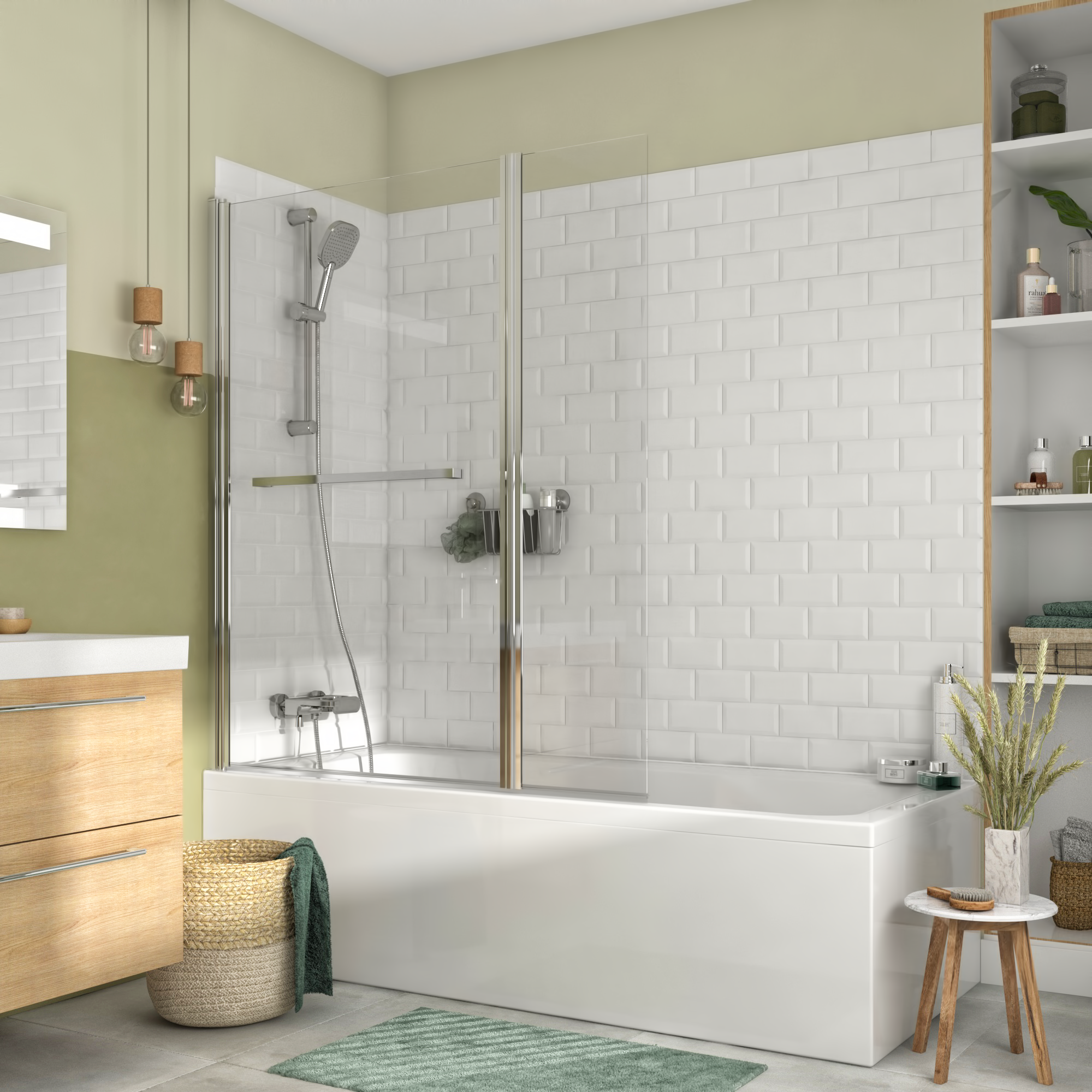 Parete doccia Remix con 3 o più ante H 140 cm, Vetro di sicurezza 5 mm trasparente