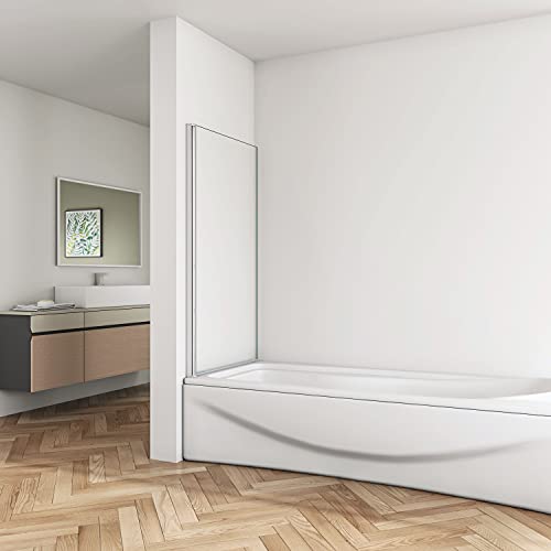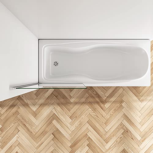 Parete Doccia per Vasca 80 cm H.140 cm Anta Squadrata in Vetro Temperato Trasparente di Spessore 6 mm Cromo Lucido