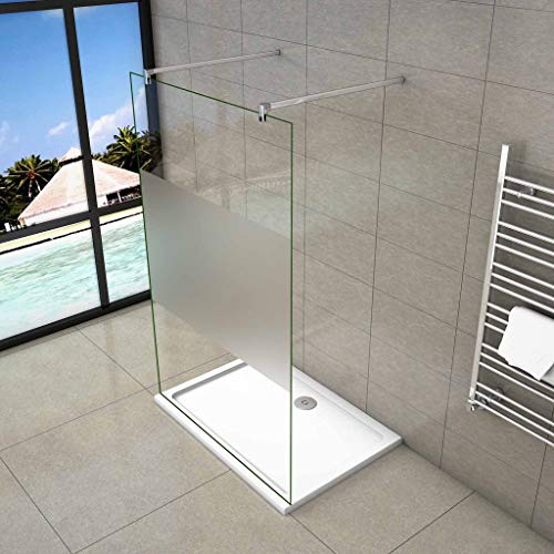 Walk In Parete Doccia in Vetro 8mm Temperato Anti-frantumi Anticalcare Striscia Centrale Opaca con Doppia Barra Stabilizzatrice da 90 cm 87x200 cm