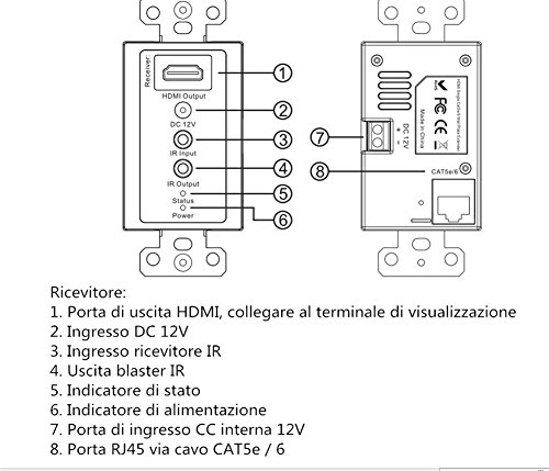 5. Supporta la funzione di espansione a infrarossi. telecomando possa essere controllato a distanza DVD, set-top box per supportare telecomando ad infrarossi tramite il ricevitore e il trasmettitore HDMI HDMI.