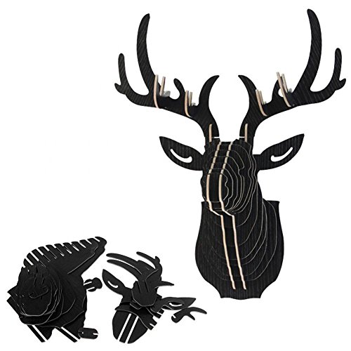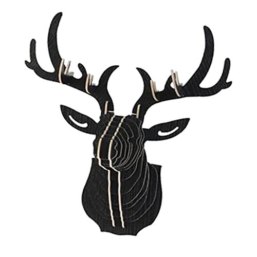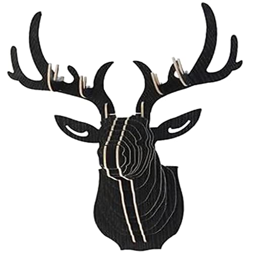 3D Parete Di Legno Modello Di Cervo Animale Appeso Scultura Testa Della Fauna Selvatica Decorazione - Nero