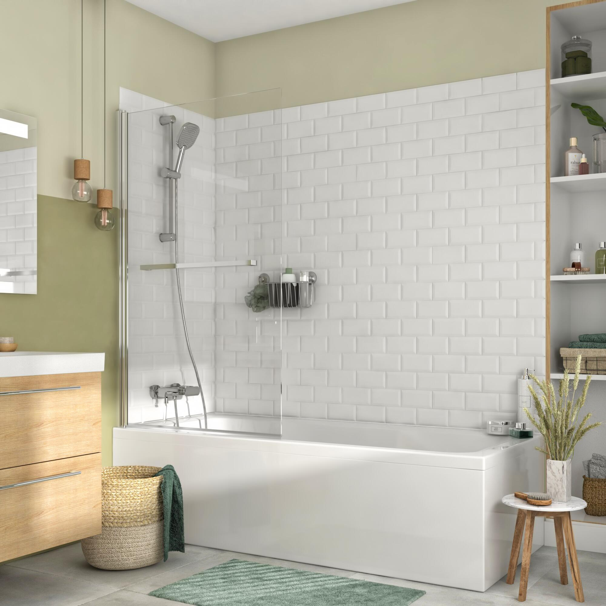 Parete vasca Remix in vetro di sicurezza 5 mm trasparente H 140 cm. "ideale per case con un unico bagno con vasca è Facile e veloce da pulire, Non richiede opere murarie complesse, Ottima durata nel tempo. Ideale in presenza di bambini e anziani. ". "La parete vasca riduce gli spruzzi d'acqua sul pavimento durante l'utilizzo È l'accessorio ideale per trasformare facilmente la vasca da bagno in una doccia e soddisfare le esigenze di tutta la famiglia"