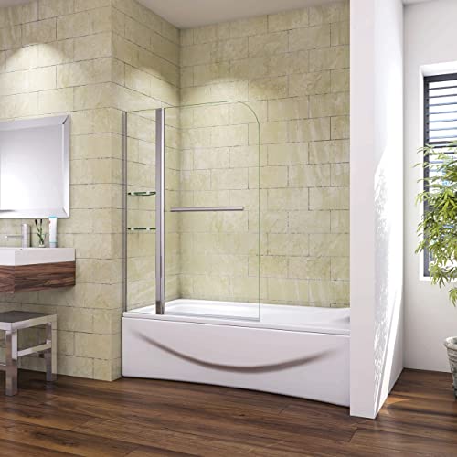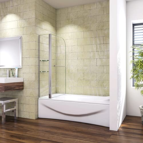 Parete Vasca Sopravasca da Bagno Doccia 120x140 cm Girevole 240 Gradi Vetro Temperato 6 mm Due Mesole Maniglia Portasciugamani