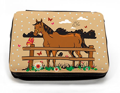 Ilka parey wandtattoo-welt Farcite Astuccio Portapenne Paddock con Farfalle e Nome Richiesta Nome Marrone fm004