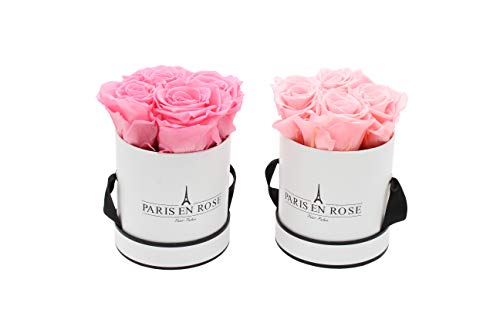 PARIS EN ROSE Rose Box Petit Palais Bijou | Scatola Bianco-Nera con Rose Rosa Infinity | Scatola di Fiori con 4 Fiori conservati