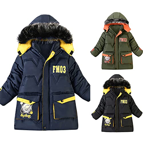 Mbby Parka Bambino Invernale, 1 - 4 Anni Ragazzo Bimbo Giacca Imbottito Con Cappuccio Pelliccia E Cerniera Bottoni Tasca Caldo Antivento Addensare Giaccone Giacche Piumino (Navy-3,2 Anni)