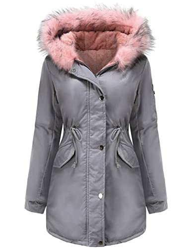 Parka Invernale da Donna Giacca Cappotti Media Lugghezza Ispessito Giacca Caldo Cappotto Felpa con Cappuccio in Pelliccia Sintetica Outdoor,grigio M