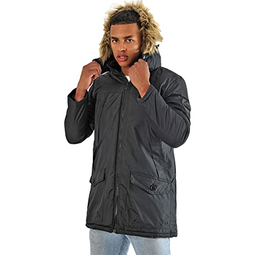 Soul Star - Parka da uomo in pelliccia con cappuccio spesso Parker, imbottito, foderato, alla moda, a maniche lunghe, leggero, abbigliamento da lavoro, con zip e bottoni, stile casual, caldo, taglia S-2XL