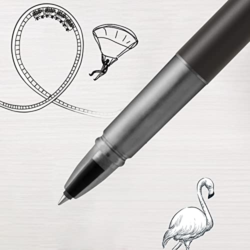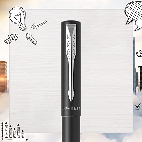 Parker penna roller Vector XL | Laccatura nero metallizzato su ottone | Punta sottile con ricarica di inchiostro nero | Confezione regalo