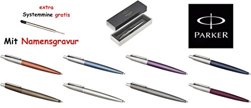 Parker, penna a sfera, serie Jotter, colorata, con incisione personalizzabileLa penna è fornita in una confezione regalo, con 1 sistema aggiuntivo con mina nera, K 60 e K 61 Oxford Grey Pinstripe