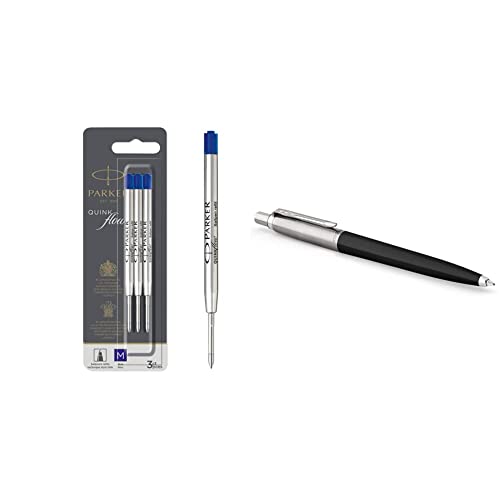 PARKER Quinkflow Ricariche Inchiostro Per Penne A Sfera, Punta Media, Blu, 3 Pezzi & Jotter Originals Penna A Sfera, Punta Media, Inchiostro Blu, Nero Classico