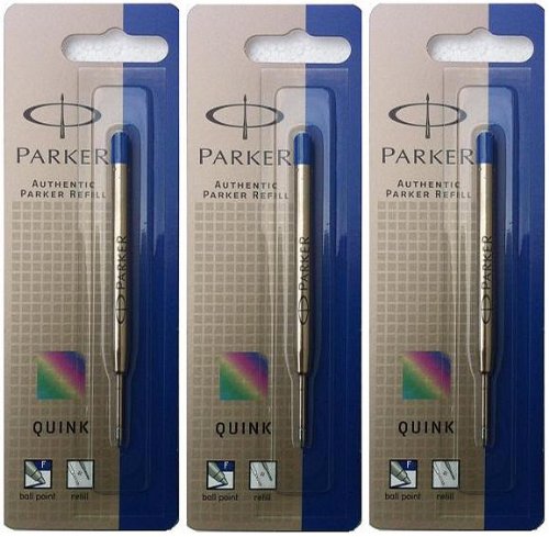 Parker - 3 refill per penna a sfera Quink, punta fine, colore blu