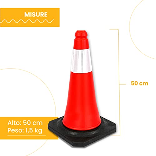 PARKING FACIL | Coni stradali 50 cm | Cono Di Traffico Con Base In Gomma E Striscia Rifrangente | Elementi di sicurezza stradale | Dimensioni: 50 cm | 1 unità