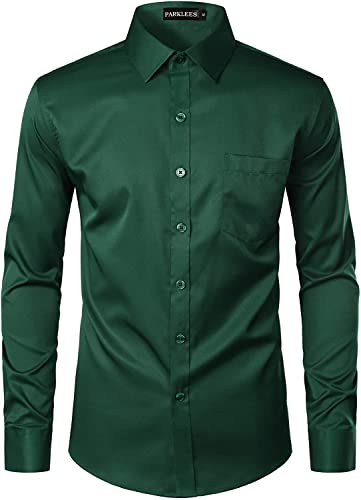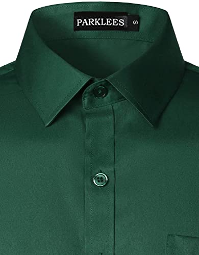 PARKLEES Camicia da uomo a maniche lunghe con bottoni, stile urbano, casual, casual, slim fit, con tasca, Verde scuro, S