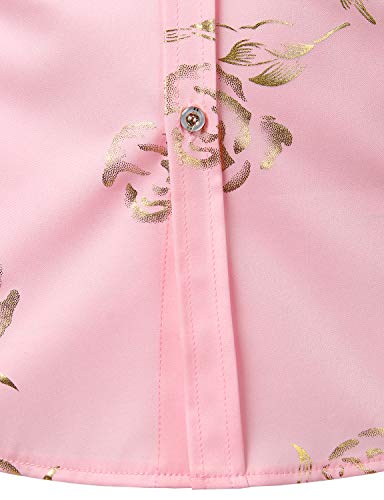 PARKLEES Camicie da uomo hipster con stampa rosa dorata slim fit manica corta abbottonata, Oro rosa, S