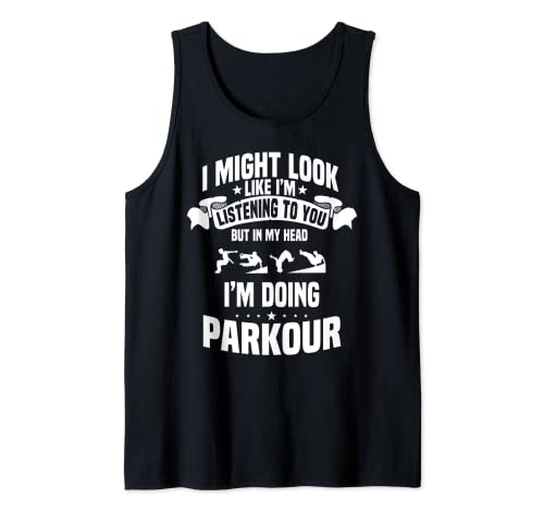 I Might Look Like I'm Listening To You But In My Head I'm Doing Parkour - Ideale per atleta, traceur, freerunner, praticanti che eseguono flip e altri movimenti acrobatici. Ottimo regalo per chi ama lo sport di corsa, arrampicata e saltare.