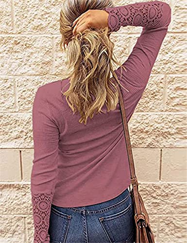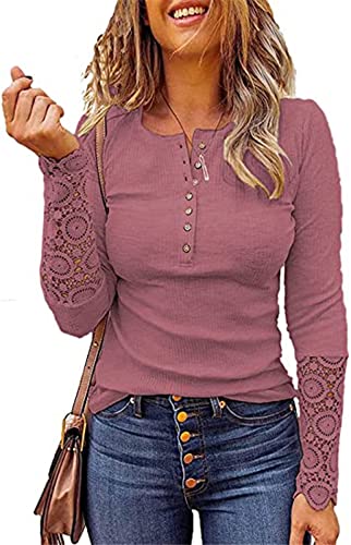 Parkourer Maglie a Manica Lunga per Donna Casual Slim Pullover Tops Girocollo Regolabile con Bottoni Blusa Donna con Manica Uncinetta Svuotata