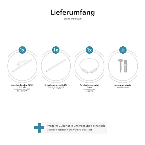 [Il materiale di montaggio in dotazione consente di installare la lampada sottopensile in modo semplice e rapido. A seconda dell'uso previsto, è possibile installare la striscia luminosa a LED rivolta verso il basso o in avanti.