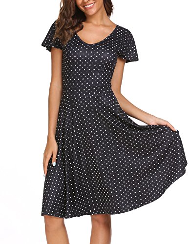 Parlich, abito da sera da donna, in jersey, a pois, con maniche a V, scollo a V, lunghezza al ginocchio, elasticizzato, con chiusura a bottoni, per feste