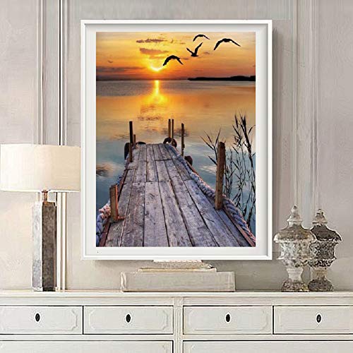 ParNarZar Set Completo di Pittura a Diamante con Strass Rotondi, Copertura Completa, Kit Fai da Te di Artigianato Artistico Fatto a Mano 5D Motivo: Tramonto sul molo, Taglia: 35 x 45 cm