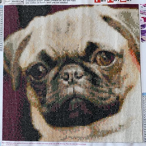 ParNarZar DIY 5D Diamond Painting Cute Pug Dog 35 x 35 cm, Pietre Rotonde Set Completo per Soggiorno, Camera da Letto, Ingresso, Passaggio, Camino
