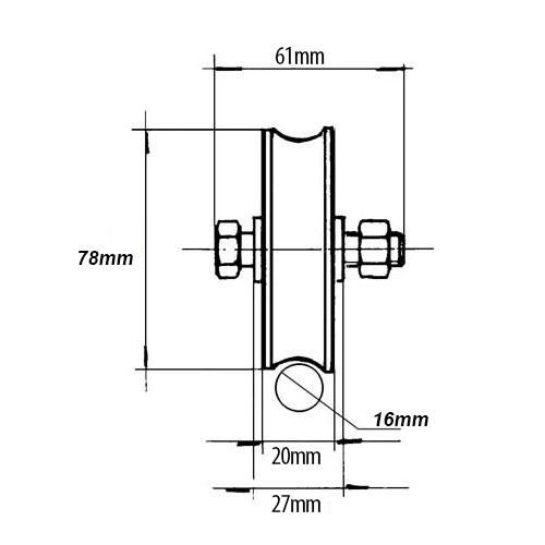 SET IDEALI: nella confezione troverai 1 puleggia, diametro 80 mm - ruota con scanalatura tonda con larghezza: 20 mm Larghezza con boccole montate: 27 mm Dimensione scanalatura (raggio): 16 mm Cuscinetto a sfera 6202RS nel centro della ruota Fornito con un bullone e dado M10x55 Carico massimo: 150 kg per ruota