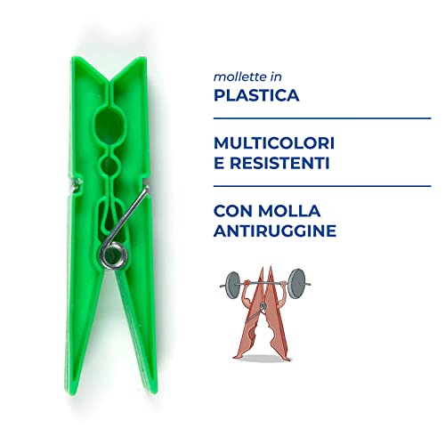 PARODI & PARODI Molly Mollette Pinze per Bucato con Molla Antiruggine Extraforte, Colori Assortiti, 9x22x4.5 cm, 20 unità