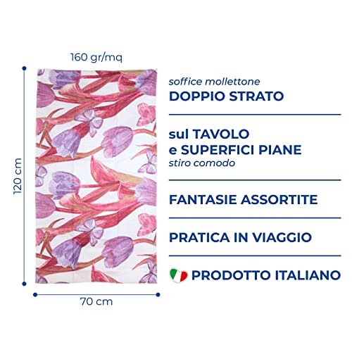 PARODI & PARODI- Telo Stiro da Tavolo, Tovaglia per Stirare, Coperta da Stiro per Tavolo Per Comoda Stiratura a Casa e in Viaggio, Resistente al Calore, Colori Assortiti, 70x120 cm, Gram. 160 gr/mq