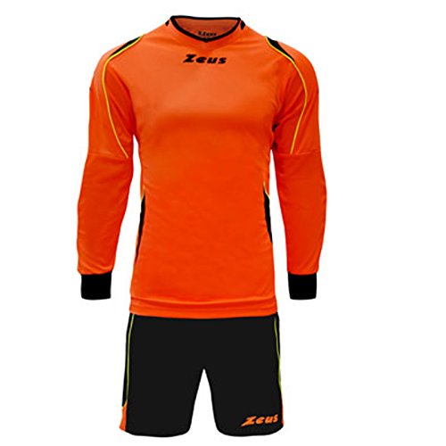 Zeus kit paros completino da portiere imbottito calcio calcetto torneo arancio fluo-nero (xxxs)