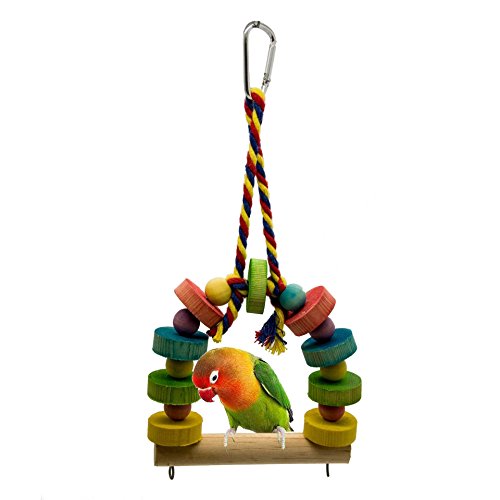 Parrot Bird Stand Bar, corda in cotone colorato blocco di legno Arco pappagallo altalena ponte levatoio girevole morso giocattolo da masticare stazione elevata forniture di uccelli Cockatiel gabbia amaca giocattolo per animali