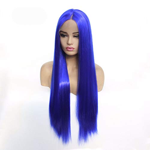 Parrucca Anteriore in Pizzo Sintetico Parrucca Blu Sfumata Con Capelli Lunghi Dritti Senza Colla Capelli in Fibra Ad Alta Temperatura Parrucca Naturale Sintetica Media Femminile,26inches