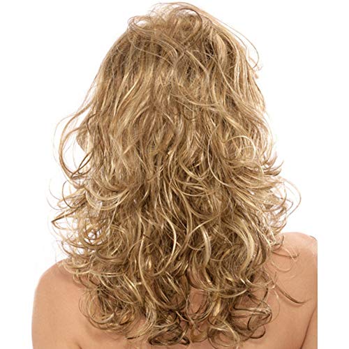 Parrucca bionda per capelli sintetici di media lunghezza con frangia per le donne