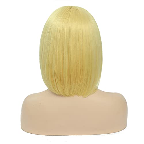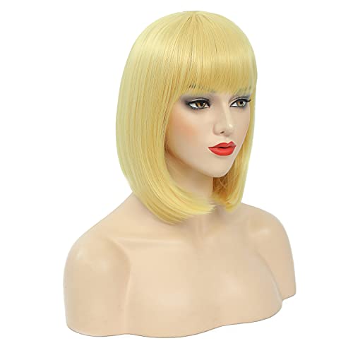 Parrucca bionda per donna Parrucca corta bionda Bob dall'aspetto naturale Parrucca corta e dritta con frangia per l'uso quotidiano Cosplay Halloween (Bionda)