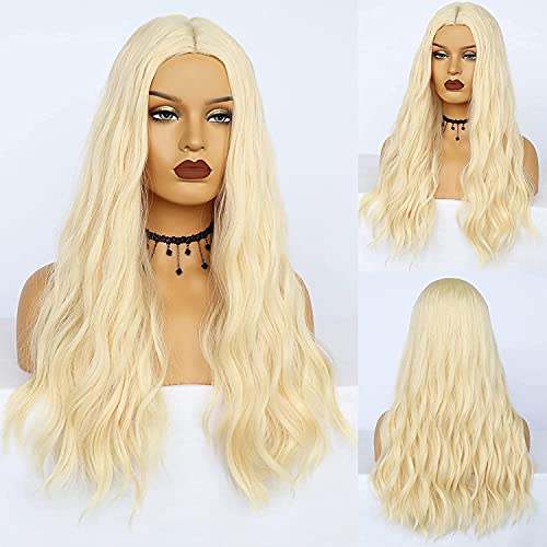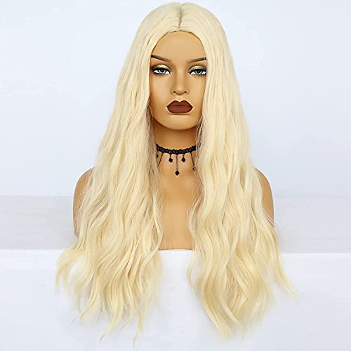 Parrucca bionda da da donna lunga ondulata, parrucca bionda con capelli lunghi e ricci, resistente al calore, parrucca sintetica