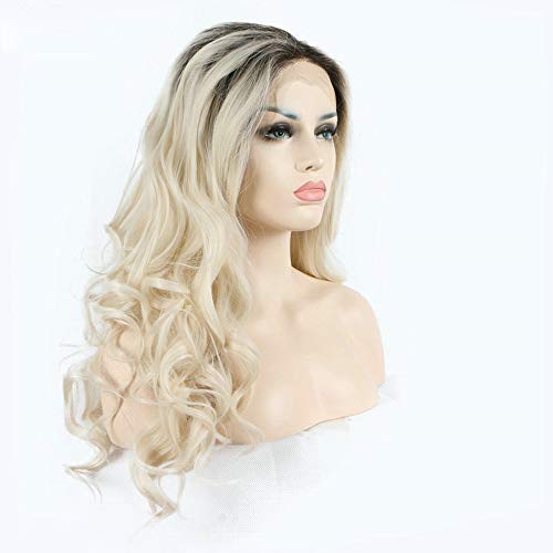 Parrucca bionda Ombre drag Queen sintetico pizzo frontale parrucca con radici scure dall'aspetto naturale per donne ragazze partito costume pastello parrucca 24 pollici